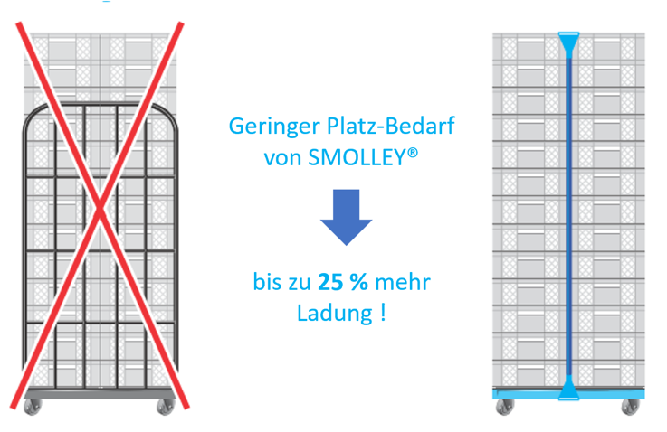 Mit SMOLLEY 20 % mehr Transport-Kapazität im Vergleich zu Gitter-Rollwagen !